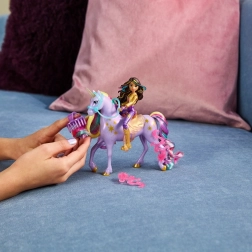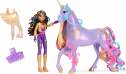 Enhjørningen Gwiazda er 12 cm høj og fuldender Sophias look med smukke detaljer som metalliske symboler for lysets magi og 2 semitransparente klips på benene. Sørg for, at Gwiazdas manke er glat og skinnende med børsten, og lad Sophia sidde sikkert på Gwiazda under legen takket være det aftagelige hovedtøj og sadel.