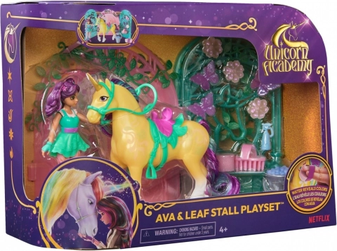 Med dette sæt kan dit barn opleve en magisk verden fra Akademiet. Figurerne Ava (11 cm) og farveskiftende Leafy (12 cm) ledsages af 15 tilbehørsdele, såsom farvede vinduesglas på boksen, der lyser ethvert børneværelse op. Med en svamp dyppet i isvand kan man afsløre magiske plante-mønstre på Leafys krop.