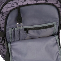 På forsiden er der to stropper, ideelle til at fastgøre skateboard, jakke eller hjelm, hvilket primært vil blive værdsat af aktive elever. Rygsækken er lavet af stærkt og vandafvisende materiale og er udstyret med reflekselementer for sikkerhed i nedsat sigtbarhed. Som en bonus finder du en metaltag i form af et skateboard.