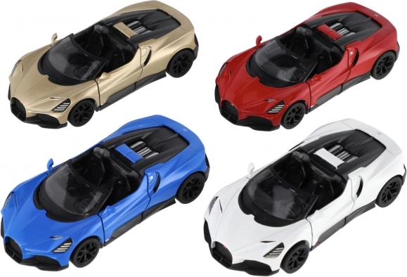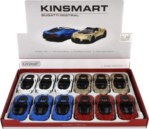 Oplev den ikoniske supersportsvogn i lommeformat: metalmodel BUGATTI MISTRAL fra Kinsmart med præcis udførelse, pull-back for hurtig kørsel og åbne døre. Realistiske detaljer, en kvalitetskombination af metal og plast samt en kompakt længde på 13 cm vil glæde både børn og samlere.