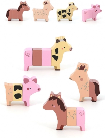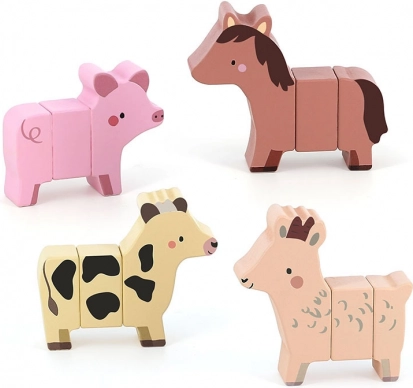 Hvordan ville en hest se ud krydset med en gris? Eller en ged med en hest? Dette underholdende magnetiske trælegetøj lader børn skabe deres egne dyr, samtidig med at det fremmer fri leg og udvikler kreativitet. Børn kan finde på historier under samlingen og lære forskellige dyr at kende.