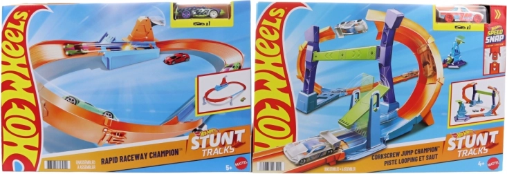 Hot Wheels Mesterskab – racerbane med stuntforhindringer. Kreativt byggeri, leg for 1+ biler, kompatibel med andre sæt. Alder 5+.