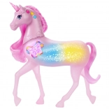 Den magiske Barbie-enhjørning forvandler enhver leg til et farverigt show fyldt med lys, lyde og musik. Med et enkelt strøg over hovedet starter showet, og med de tre farveknapper skaber du op til 20 unikke kombinationer – fra blide glimt til iøjnefaldende lyschoreografier.