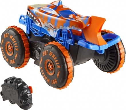 Hot Wheels RC Tiger Shark kombinerer et vildt look og robust konstruktion med smarte funktioner for maksimal underholdning. I Speeder-tilstand suser den takket være Grip Action-dækkene ubesværet over asfalt, tæpper og jord. I Climber-tilstand forlænges halen, hvilket forbedrer stabiliteten og grebet ved passage af forhindringer.