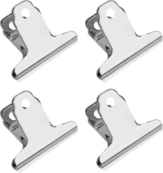 Disse klemmer er fremstillet af holdbart metal, hvilket sikrer deres lang levetid og mulighed for gentagen brug. Deres enkle form og blanke, forkromede overflade giver et professionelt udseende. Takket være hullet i grebet kan klemmerne nemt hænges på en tavle eller krog.