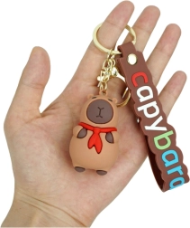 Vedhænget er udstyret med en robust karabinhage og en klassisk ring, så du nemt kan fastgøre det til nøgler, taske, rygsæk, etui eller kosmetikpung. Dette design kombinerer æstetik med praktisk anvendelighed, hvilket gør det til det ideelle tilbehør til hverdagsbrug. Den silikonebaserede tag med teksten “capybara” i farvede bogstaver giver produktet et moderne og ungdommeligt præg.