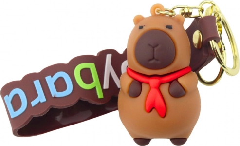 Stilfuldt kapybara-vedhæng med rødt tørklæde – blødt, fleksibelt og ideelt til både nøgler og tasker. Fokus på detaljer.