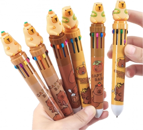 Den flerfarvede kapybara-pen er udstyret med op til 10 forskellige blækfarver, hvilket gør den til et ideelt redskab til daglig skrivning, kreative noter, understregning og tegning. Pennens ergonomiske form sikrer komfort ved længere tids skrivning, og de højkvalitets patroner garanterer en jævn skrift på papiret.