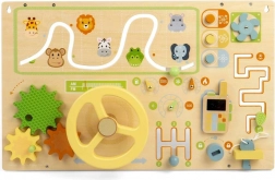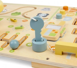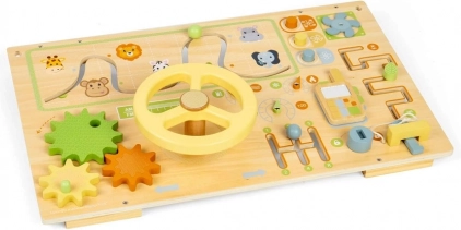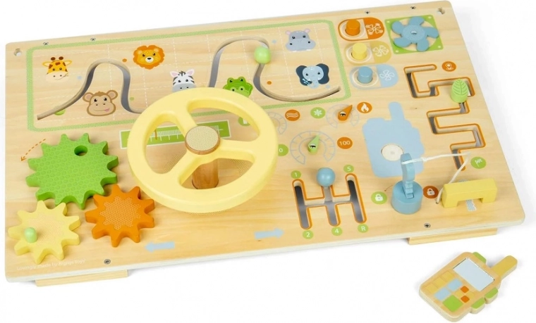 Denne aktivitetsplade er fyldt med forskellige aktiviteter som knapper, labyrint, tandhjul, dreje- og skydeskiver. Understøtter finmotorikken og hånd-øje-koordinationen, udvikler problemløsningsfærdigheder og forståelse for årsag og virkning. Børn lærer gennem leg og sjov!