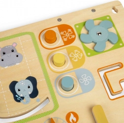 Dette farverige aktivitetsbræt med søde dyr tilbyder masser af sjove aktiviteter, der udvikler dit barns finmotorik, nysgerrighed og færdigheder.
