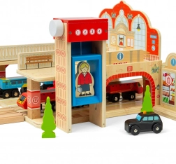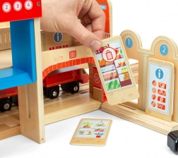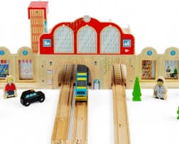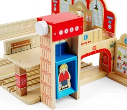 Væk din togbaneverden til live med den smukke, lystfarvede banegård fra Bigjigs Rail. Den har perroner på begge sider med trapper og en fungerende elevator helt op til billetlugen. I sættet medfølger to passagerer, som øger børns leg og fantasi.