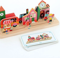 Et logisk træspil for kvikke hoveder, som på en sjov måde udvikler børns rumlige fantasi, logiske tænkning og finmotorik. Spillet indeholder træbrikker og spillekort i forskellige sværhedsgrader, der lærer børn at opfatte rumlige relationer.