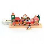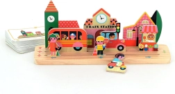 Denne logiske træpuslespil med smukke illustrationer af Ingela P. Arrhenius udvikler børns færdigheder gennem leg. Ved hjælp af træbrikker og spillekort lærer børn at opfatte relationer mellem genstande som venstre, højre, oppe, nede og i midten og at placere dem korrekt efter anvisningerne.