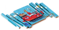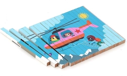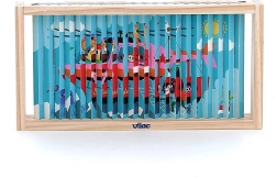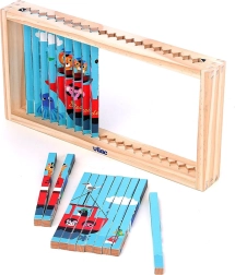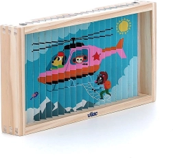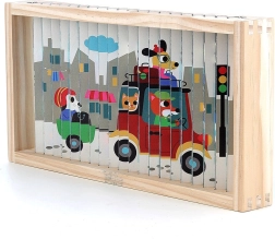 Oplev verden fra forskellige vinkler med dette fire-dimensionelle træpuslespil. Takket være designet af Ingela P. Arrhenius venter der fire forskellige illustrationer: bil, båd, helikopter og tog. Ved at skubbe træpindene ind i stativet udforsker barnet ikke kun de skjulte billeder, men udvikler også logisk tænkning og iagttagelsesevner.