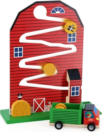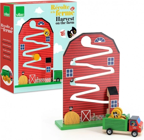 Oplev gårdens magi med trælabyrinten fra Vilac. Dette spil er ideelt til børn fra 18 måneder og byder på læringsrige oplevelser, der aldrig bliver kedelige. Børn lærer de grundlæggende principper for årsag og virkning ved at se, hvordan halmballerne glider ned ad banen.