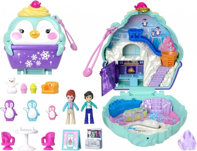 Dyk ned i den fortryllende verden af Polly Pocket med dette søde mini hus i form af en pingvin. Sættet er ideelt til børn, der elsker søde og varierede legescenarier. Det omfatter: