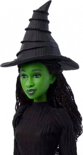Fans kan genopleve magiske øjeblikke fra filmen med denne dukke takket være omhyggelige detaljer som en sort blonde-nederdel og en bred heksehat. Der medfølger også realistiske accessories: sorte højhælede sko og indviklede fletninger.