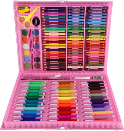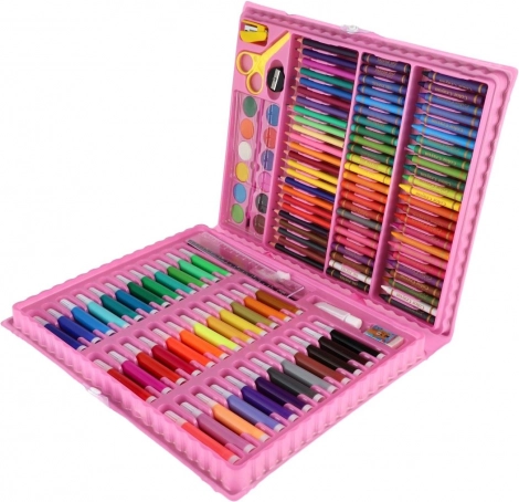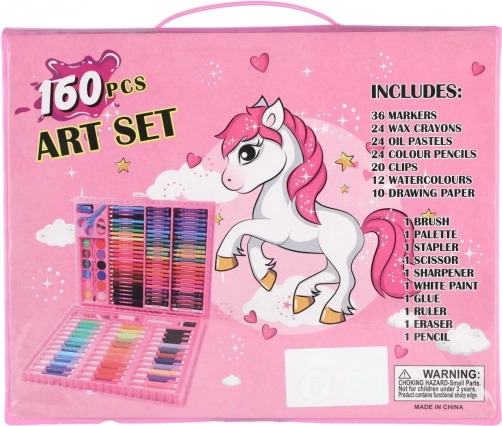 Udforsk fantasiens verden med dette kreative malersæt med enhjørning. I den praktiske plastkuffert finder du 160 kunstnerartikler – farveblyanter, tuscher, voksfarver, akvarelfarver og andet tilbehør, som understøtter kreativitet og udvikling af finmotorik. Ideelt til kreativ hygge derhjemme og på farten takket være de kompakte mål og den overskuelige opbevaring.