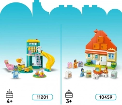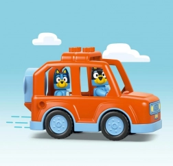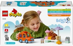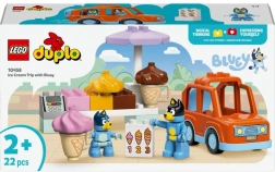 Dette søde sæt, inspireret af den populære serie BLUEY, tager børn med på familieudflugt efter is. Sæt figurerne Bluey og far i bilen, stop ved boden og vælg, hvor mange kugler der skal i vaffelen i dag. Realistiske tilbehør som betalingsautomat, menu og kopper og vafler giver masser af scenarier til fælles leg mellem forældre og børn.