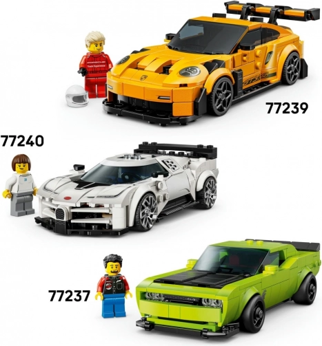 Der medfølger 2 chauffør-minifigurer med racerkøredragter og hjelme, som kan placeres i kabinen og sættes på banen. Sættet tilbyder intuitiv bygning efter den trykte vejledning eller i LEGO Builder-appen med 3D-visning, lagring af trin og sporing af fremskridt.