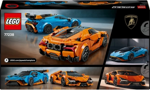 Dette premium LEGO Speed Champions-sæt bringer to topklasse LAMBORGHINI-superbiler i skala til leg og samling: den ekstremt kraftfulde Revuelto med V12-motor og den alsidige Huracán STO til både vej og bane. Begge modeller indfanger mærkets karakteristiske linjer, inklusive luftindtag, aerodynamiske vinger og Y-formede forlygter.