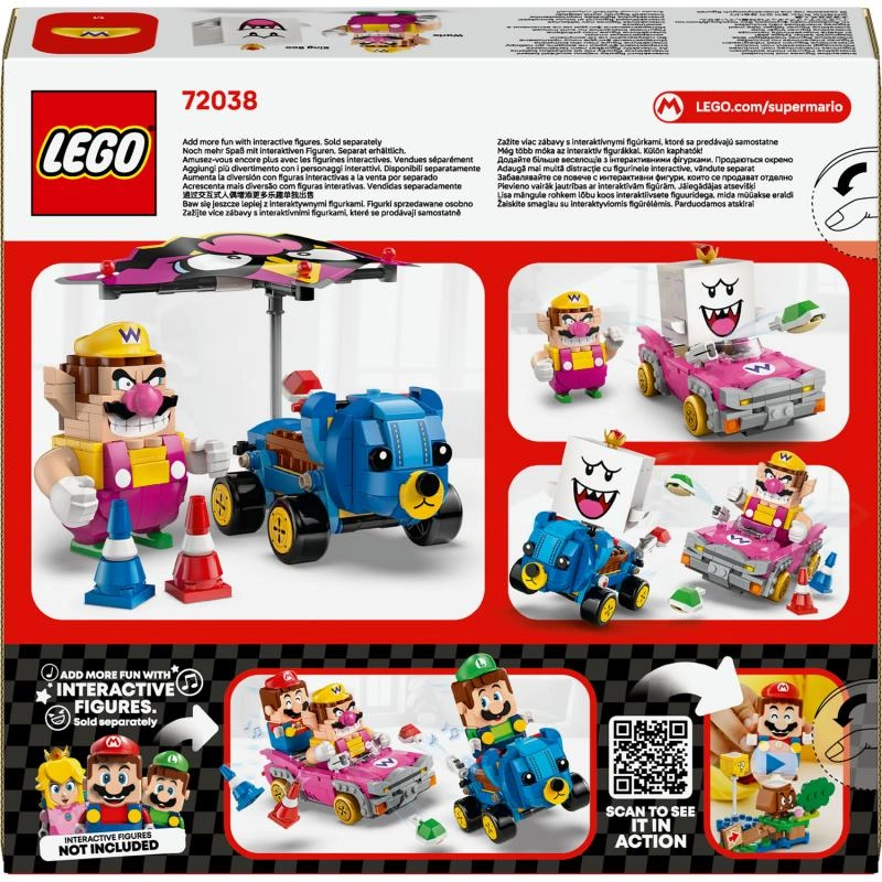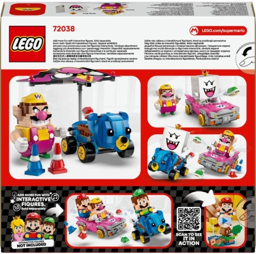 Ræs, drift og skalkampe – dette sæt bringer den ægte Mario Kart-stemning ind på værelset. Byg de to seje karter Badwagon (Wario) og Teddy Buggy (King Boo), tilføj kegler på banen, og nyd kreative racescenarier. Den aftagelige svævevinge fra Badwagon kan også monteres på Teddy Buggy for endnu mere action.