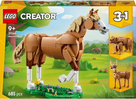 Oplev uendelige byggemuligheder med sættet Creator 3 i 1: smuk hest. Af ét sæt klodser bygger du en bevægelig hestefigur med stativ, som kan stilles i tre forskellige positioner: på tre eller fire ben eller majestætisk på bagbenene. Alle modeller er rigt detaljerede og er perfekte både til leg og til udstilling på børneværelset.