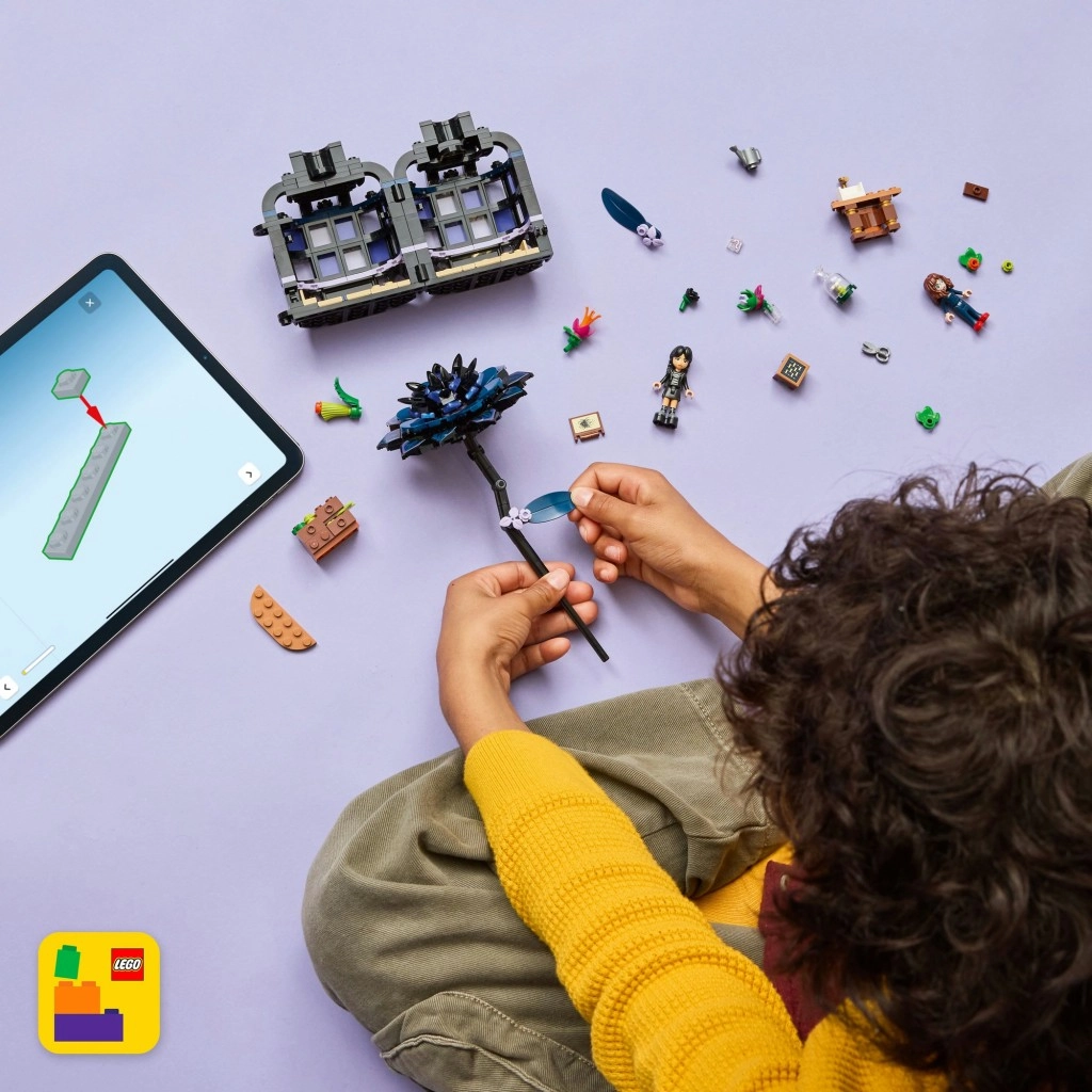 To minidukker – Wednesday Addams og professor Marilyn Thornhill – stimulerer fantasien og tilfører en spændingsfyldt stemning. Takket være gennemtænkte detaljer, bevægelige elementer og mange muligheder for opsætning er sættet perfekt til både display og leg. Med appen LEGO Builder kan ældre børn nemt bygge modellen, dreje den i 3D og følge fremskridtene.