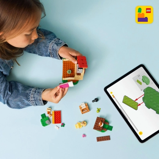 Byg Goldies farverige hus med rødt tag, postkasse og et hyggeligt interiør med seng og klaver. Udenfor venter et picnicbord med croissant, pære og krus – perfekt til fantasifulde historier. Med LEGO Builder-appen kan børn zoome ind og dreje modeller i 3D og bygge med endnu større selvtillid.