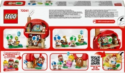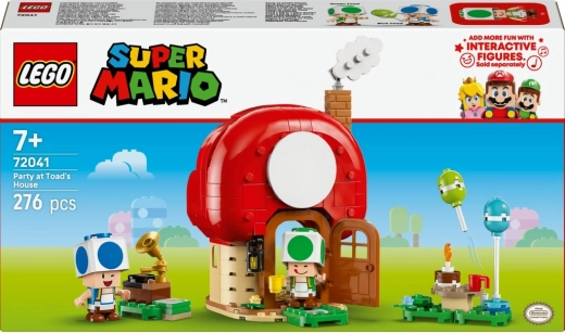 Hold en sjov fest hos Toad med et legende LEGO Super Mario sæt. Toads hus med køkken og soveværelse, aftagelige møbler og et udendørs picnicbord suppleres af to figurer: Blue Toad og Green Toad. Der er også en grammofon med en actionfunktion, som spiller musik, når den forbindes med interaktive figurer, samt en dørklokke for endnu mere sjov. Den perfekte gave til børn fra 7 år og alle fans af SUPER MARIO-universet.