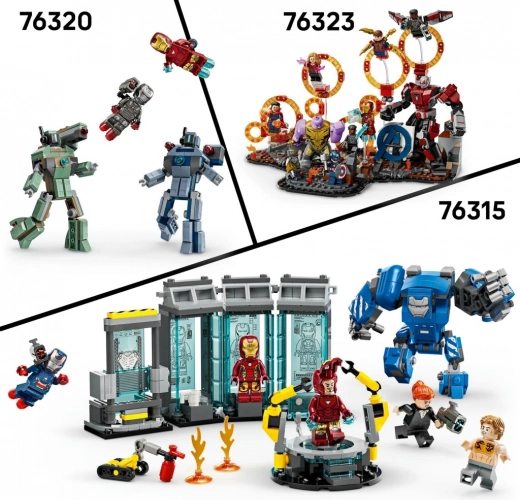 IRON PATRIOT MK2, ROCKET med stor skyder, THOR med Stormbreaker og 4 Chitauri-soldater. Tilføj scootere og tilbehør og skab dine egne filmscener.