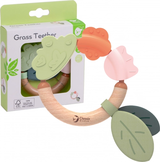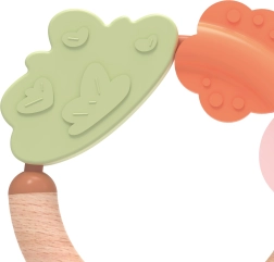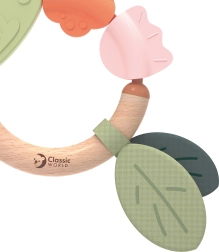 Den unikke kombination af naturligt træ og blød silikone stimulerer sanserne og opmuntrer til at udforske verden, hvilket gør den til den perfekte første bidering og rangle til hvert barn.