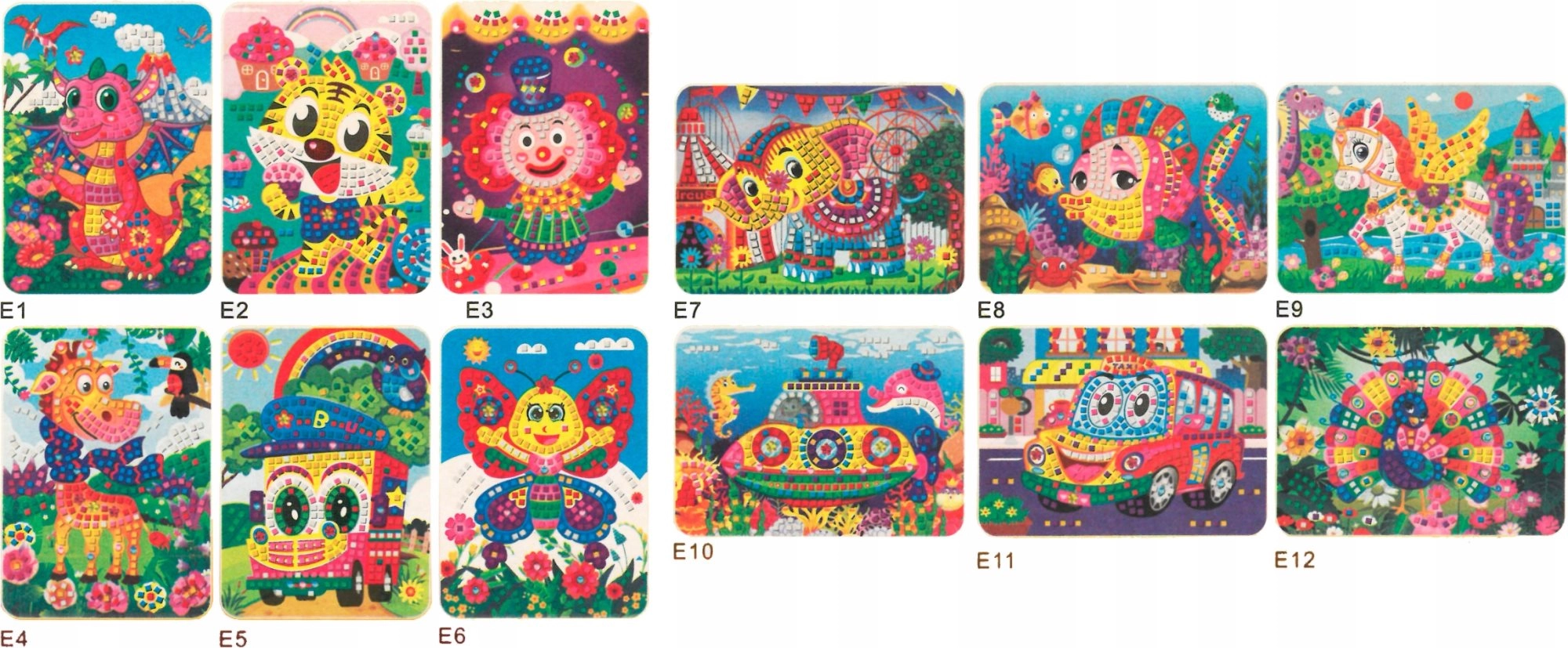 Lav dit eget mosaikbillede med dette sjove og kreative sæt. Dette produkt vil helt sikkert tiltale små kunstnere takket være dets enkle koncept med at klæbe skumformer og tilføje klistermærker. Fantasien kender ingen grænser, du kan lave et billede efter vejledningen eller helt efter dit eget design.