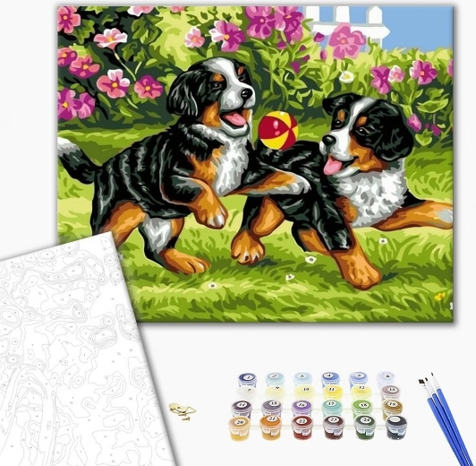 Dette sæt til maling efter tal gør det let for dig at fordybe dig i en verden af kreativitet og farver. Trin for trin vil du se billedet af hvalpe tage form og blive fascineret af den kreative proces.