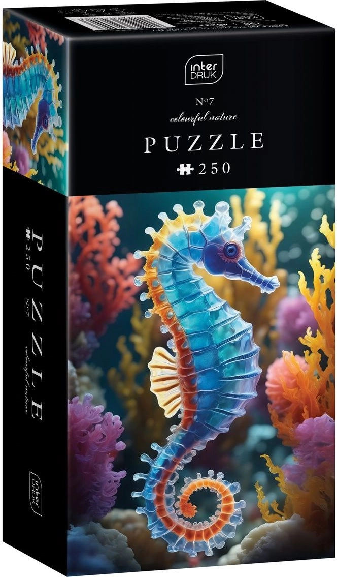 Nyd timevis af underholdning med det smukke puslespil Farverig natur: Søhest fra Interdruk. Puslespillet med 250 brikker vil begejstre enhver elsker af havets verden.