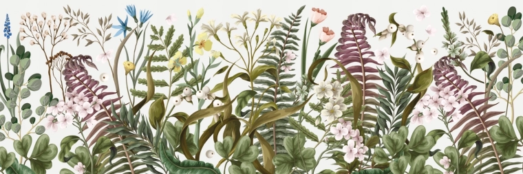- Betagende blomstermønster - Bregner og blomster skaber et harmonisk naturmotiv.