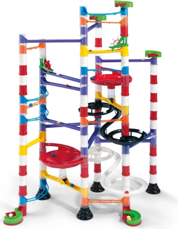Farverig kuglebane til børn fra 6 år, som understøtter deres kreativitet og fantasi. Ved at forbinde delene kan børn skabe forskellige baner fulde af broer, spiraler og andre forhindringer, som er sjove at følge.