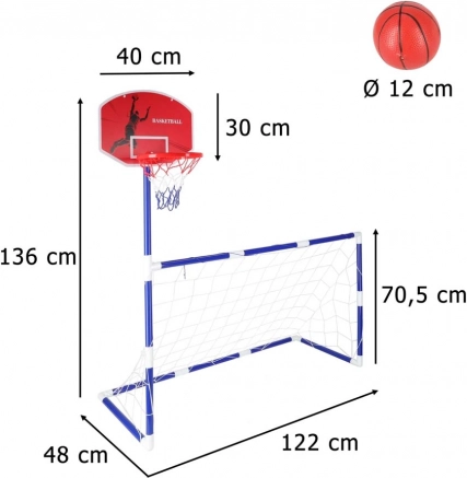 Alsidigt legetøjssæt, der kombinerer fodboldmål og basketballkurv, bringer glæde ved leg og bevægelse i frisk luft. Små sportsudøvere kan afprøve deres færdigheder i både skud på mål og skud i kurven.