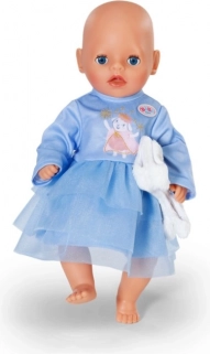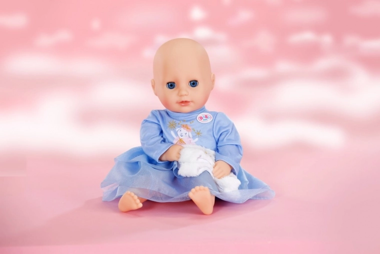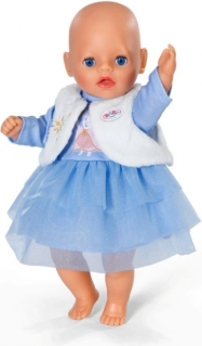 Stilfuldt vintertøj til dukker i størrelsen 36 cm omfatter en blå kjole med lange ærmer, lagdelt tylskørt og en fløjlsblød vest. Takket være det enkle snit er det let at klæde på, selv for de mindste. Sættet i legende pastelfarver giver en magisk vinterlook, behagelig påklædning og masser af kreativ leg.