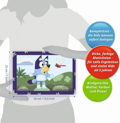 Bliv kunstner med CreArt og fyld dit hjem med et sødt motiv fra den populære serie Bluey. Dette kreative sæt byder på mange timers underholdning og en udfordring i form af præcis farvelægning efter tal.