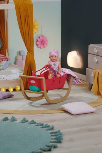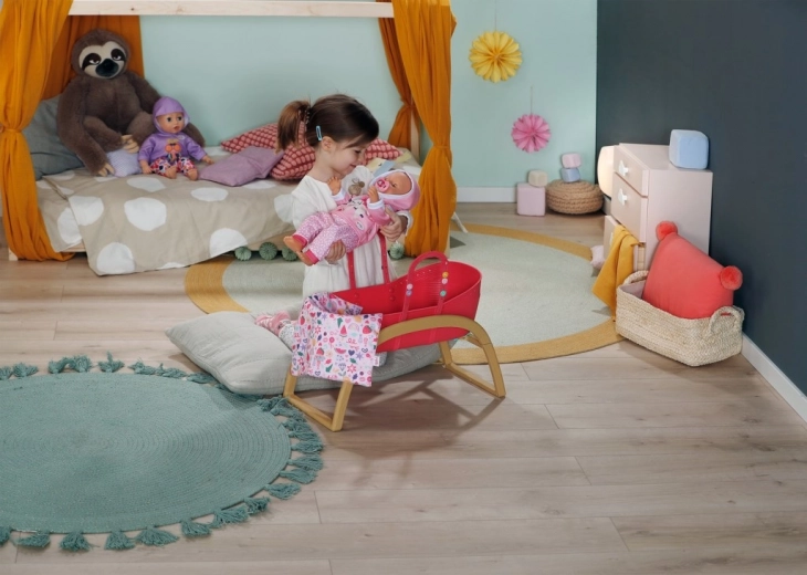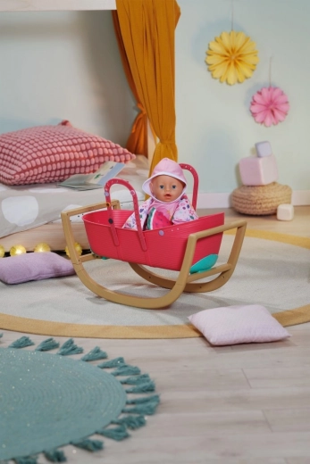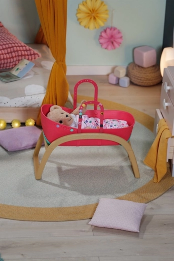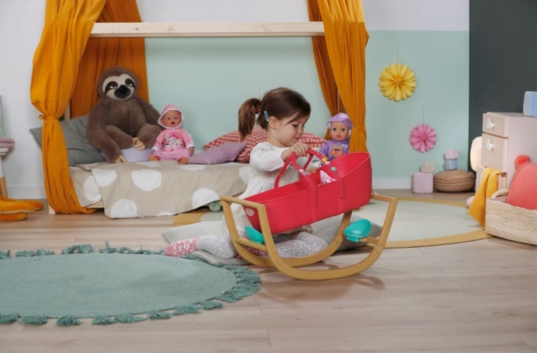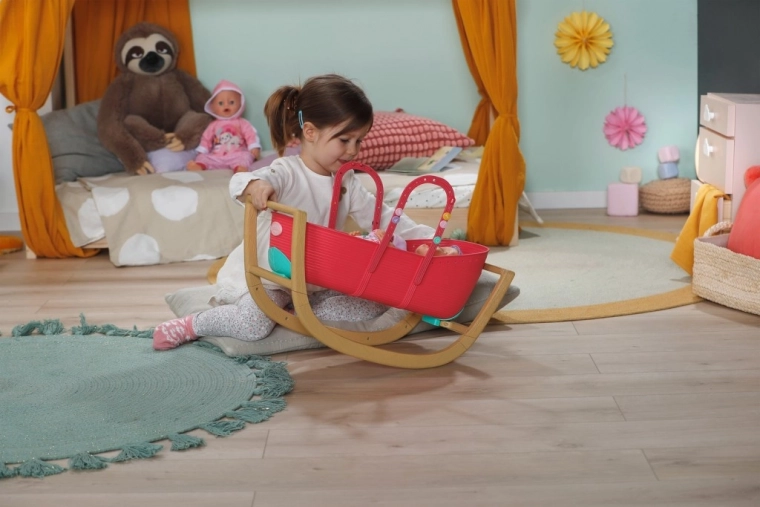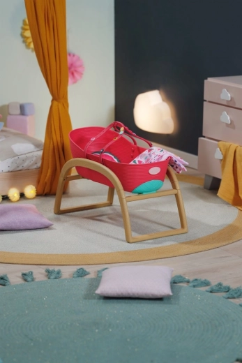 Opdag den praktiske 3-i-1 dukkeseng til BABY born, der vokser med barnets fantasi. På et øjeblik forvandler du den fra en elegant vugge til en transportkurv med integrerede håndtag eller til en stabil børneseng. Den lette plastbalje i kombination med den faste vuggebase i træ-look gør den nem at bære og giver sikker, jævn gyngen.