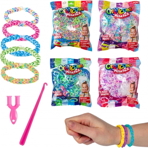 Skab dine egne unikke smykker med dette megasæt, der indeholder op til 5000 farverige elastikker, fletteværktøj og clips. Ideelt til at udvikle børns kreativitet og finmotorik.