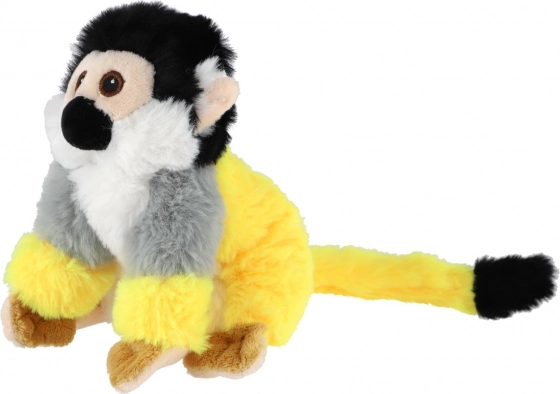 Denne plysabe med den typiske marmoset-farvetegning (gul, grå, sort og hvid) begejstrer ved første berøring. Bløde og luftige hår, lang hale og markante broderede øjne understøtter finmotorik og fantasi under legen.