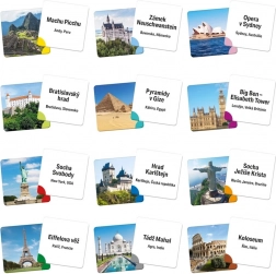 Pexeso Seværdigheder bringer traditionel underholdning i form af at finde par, hvor spillerne skal finde et billede af en seværdighed og det tilsvarende navn. Alle navne er på tjekkisk, og spillet understøtter udviklingen af hukommelse, logisk tænkning og finmotorik. Spillet er let tilgængeligt selv for ældre spillere og små børn, takket være de farvede hjørner på kortene, der gør det lettere at finde. Hovedpunkter: