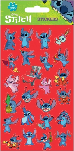 Søde og sjove klistermærker med licenseret motiv af Lilo og Stitch vil glæde enhver Disney-fan. Ark med 25 stk. genanvendelige klistermærker i iøjnefaldende rød farve. Ideelle til at dekorere hæfter, dagbøger, breve eller gaver. Velegnet til børn fra 3 år.