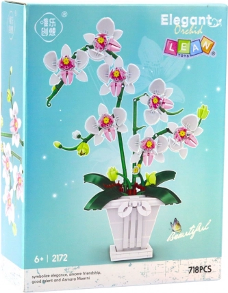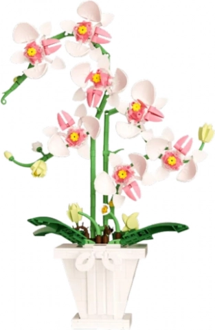 Dette byggesæt tilbyder en model af en elegant orkidé, inspireret af ægte blomster. Med fokus på detaljer, fra de fine kronblade til realistiske stængler og en dekorativ urtepotte, bliver det et smukt indslag i indretningen.