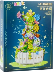 Et fremragende byggesæt, der kombinerer farverig flora med et elegant dekorativt element og byder på detaljerede strukturer af blomster, blade og sommerfugle. Den samlede komposition stiger i en spiral opad og afsluttes med en smuk top. Sættets base er rund, hvid og har et dekorativt design.