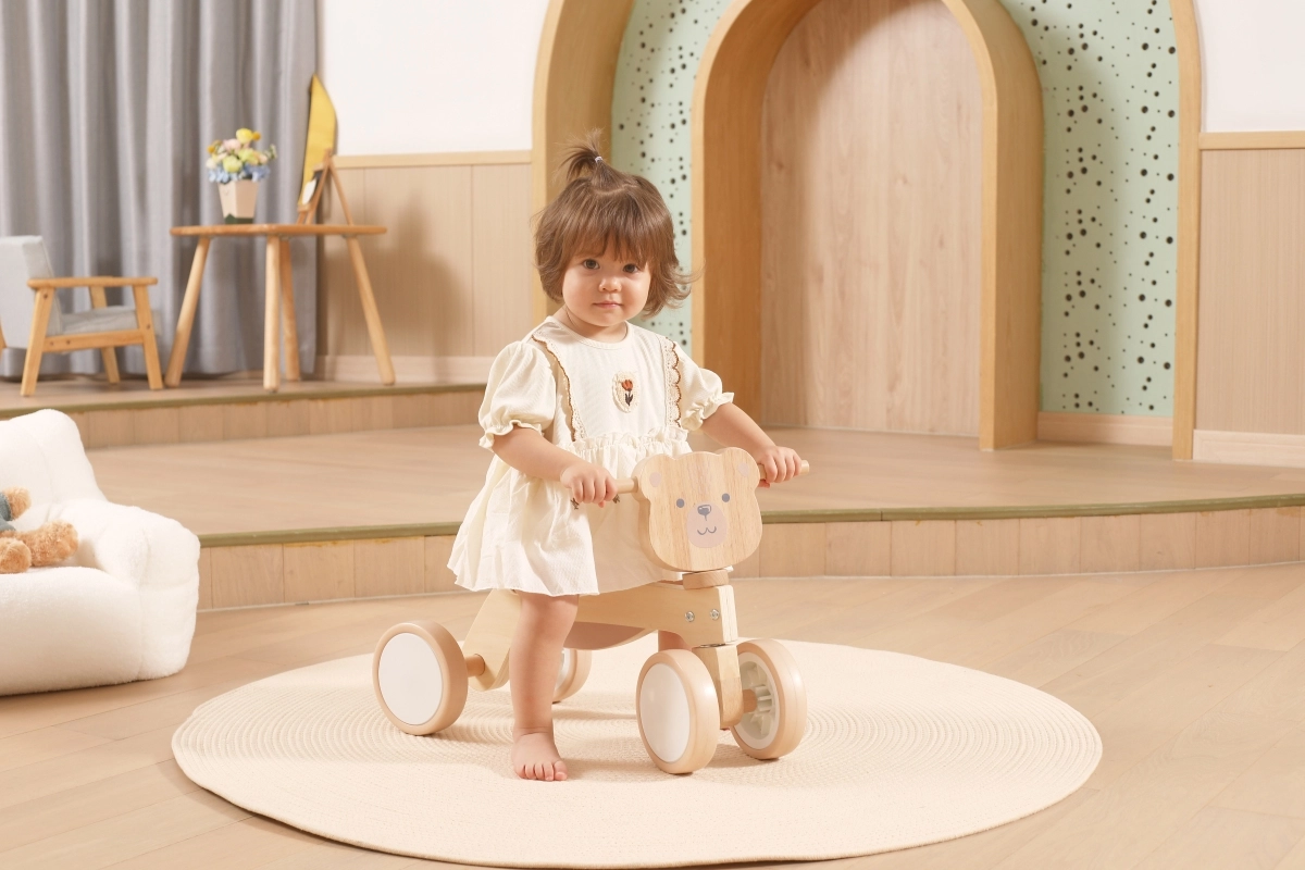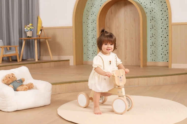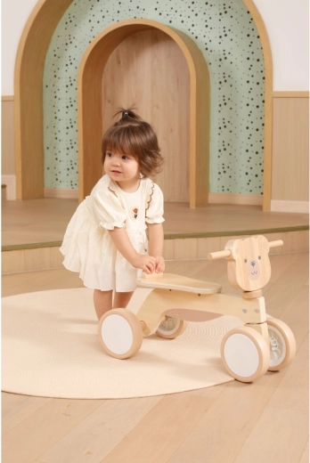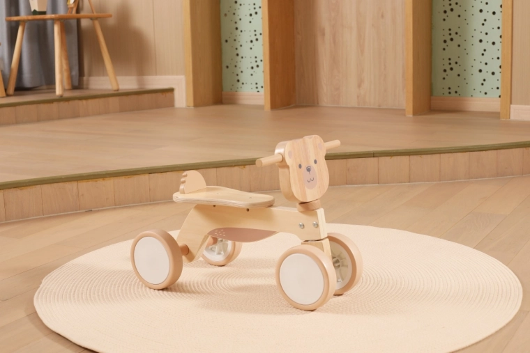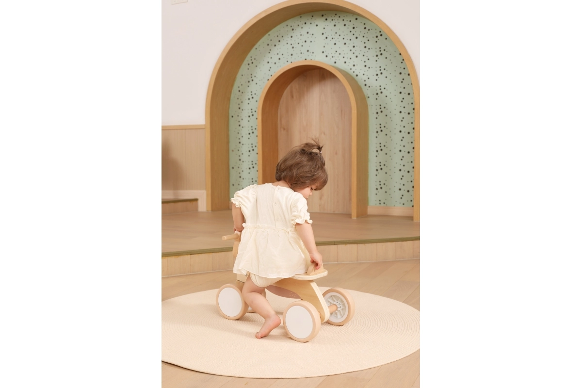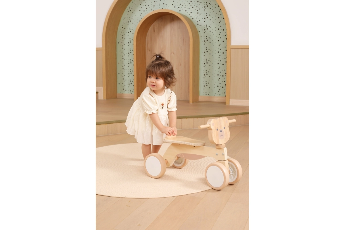 VIGA PolarB løbecyklen er designet til små ryttere, der lærer koordination og balance. Den robuste trækonstruktion, det lave sæde med ryglæn og glatte afrundede kanter giver tryghed ved hvert fraspark. Fire brede EVA-hjul kører stille og laver ikke ridser i gulvet, hvilket gør den ideel til indendørs brug og jævne udendørs underlag.