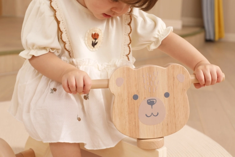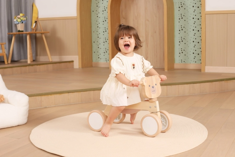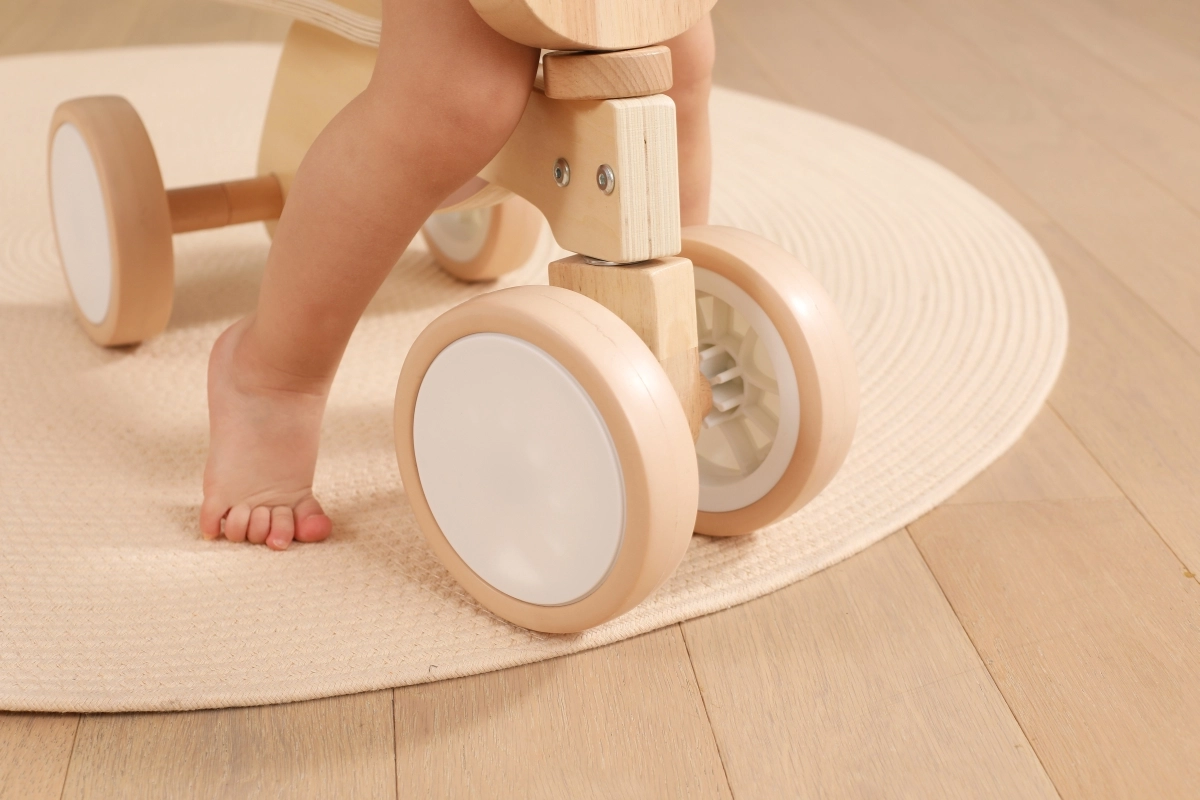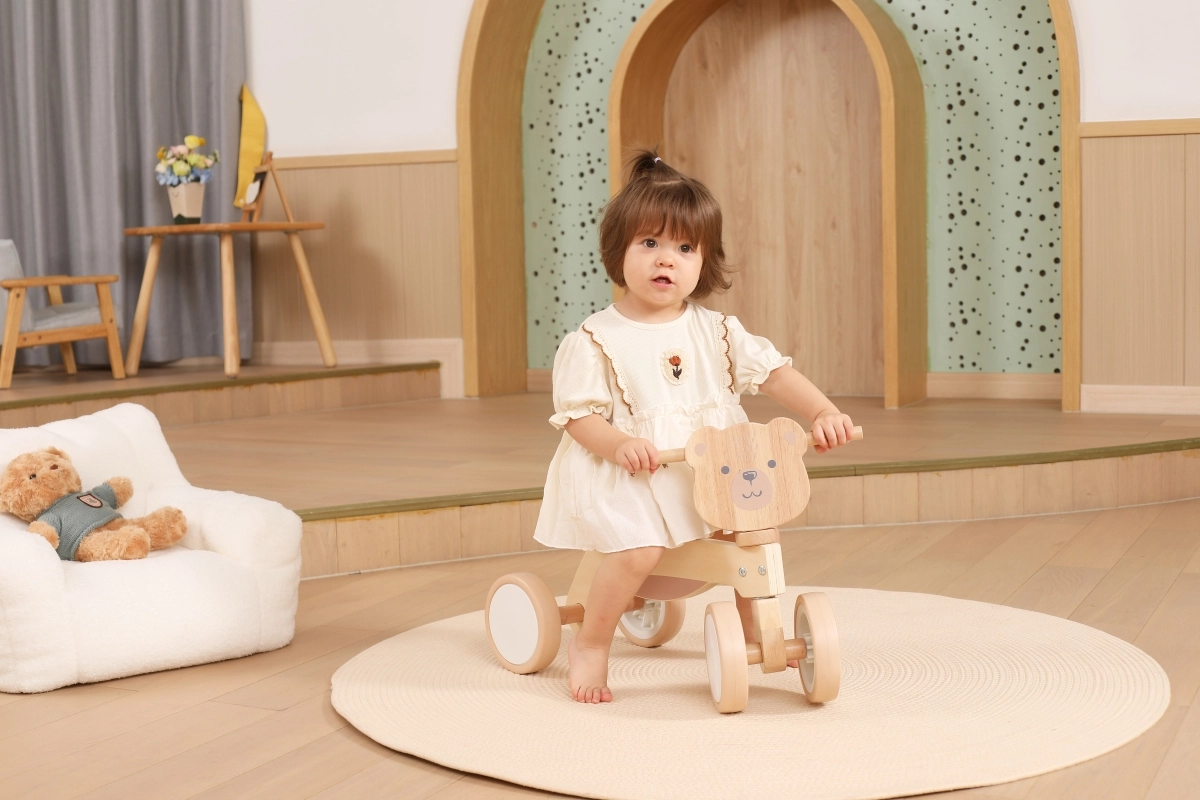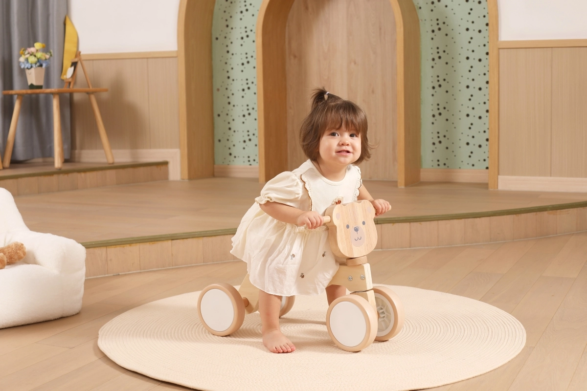 VIGA PolarB løbecyklen er designet til små ryttere, der lærer koordination og balance. Den robuste trækonstruktion, det lave sæde med ryglæn og glatte afrundede kanter giver tryghed ved hvert fraspark. Fire brede EVA-hjul kører stille og laver ikke ridser i gulvet, hvilket gør den ideel til indendørs brug og jævne udendørs underlag.