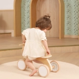 De første skridt ind i cykelverdenen klares trygt takket være den stabile firehjulede konstruktion og det komfortable sæde med anti-glid rygstøtte. Løbecyklen er lavet af kvalitetstræ og har stille EVA-hjul, som er skånsomme mod gulve og også klarer glatte udendørs overflader.